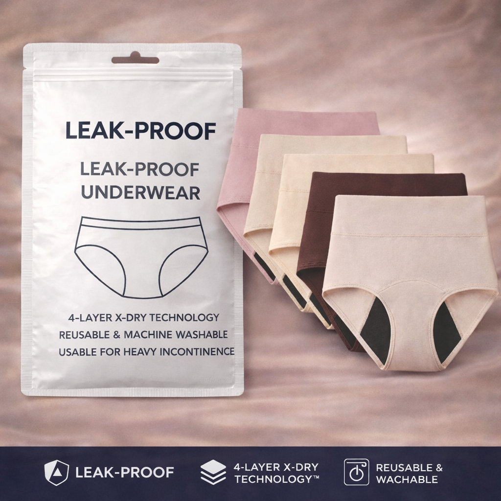 experience discreet leak-proof comfort with our 4 layer absorbent technology-designed for ultimate protection, peace of mine & all day confidence.